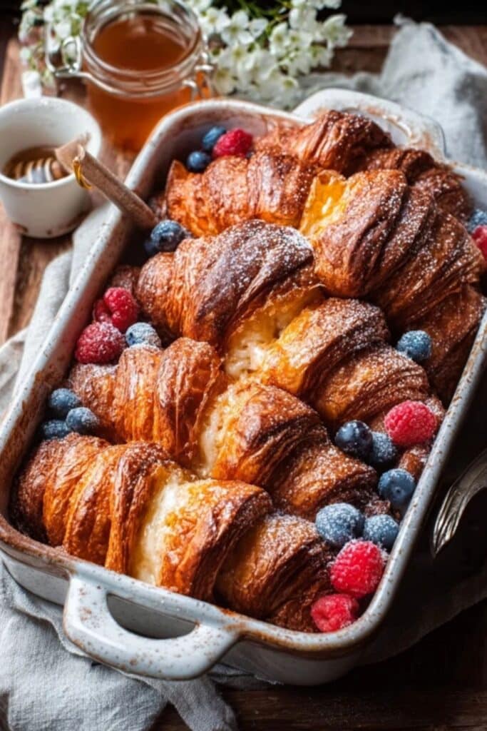 One of the joys of Baked Croissant French Toast is how easily it adapts to flavor preferences. Want a fruity finish? Layer in fresh or frozen berries like blueberries, raspberries, or chopped peaches. Prefer a bit of indulgence? Add chocolate chips, chopped pecans, or even a swirl of Nutella.