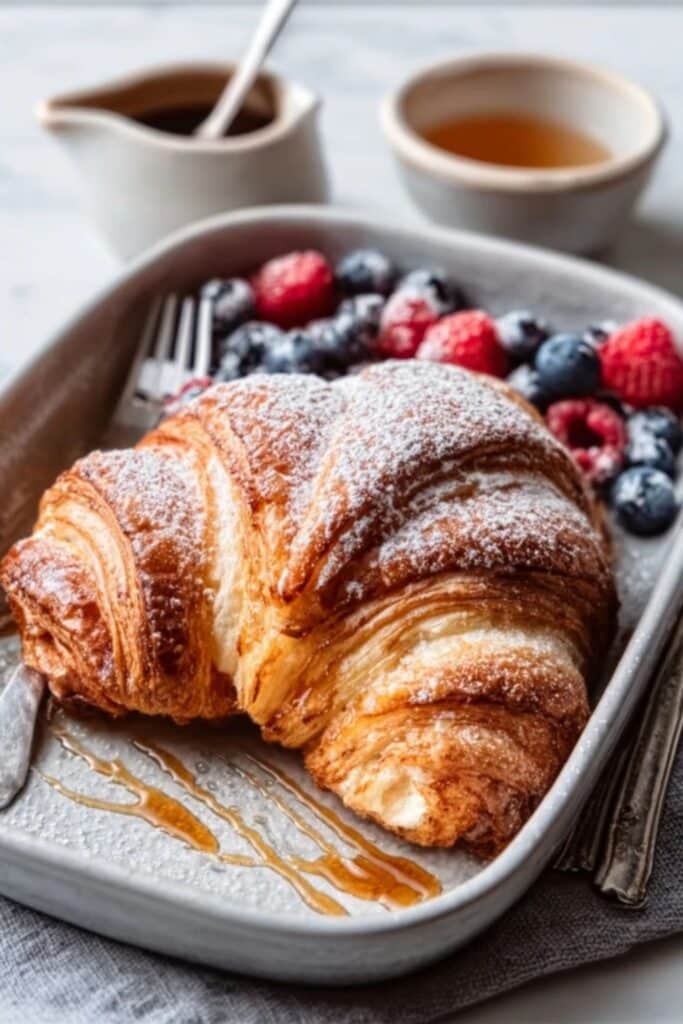 Once your Baked Croissant French Toast is golden brown and puffed, it’s time to dress it up. Maple syrup is the classic go-to, but it’s not your only option. Try drizzling it with: