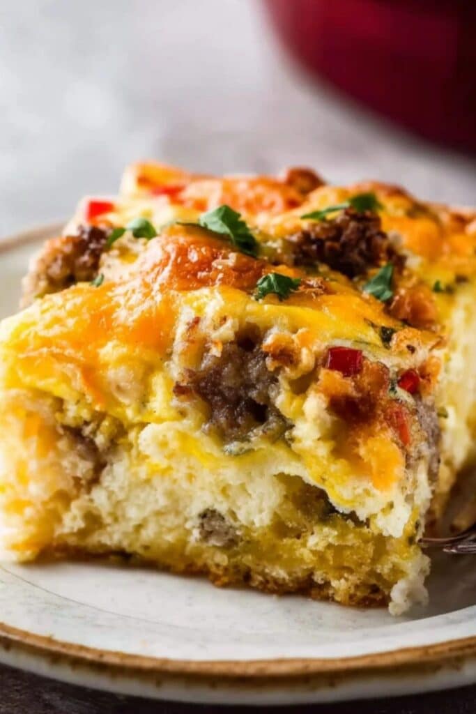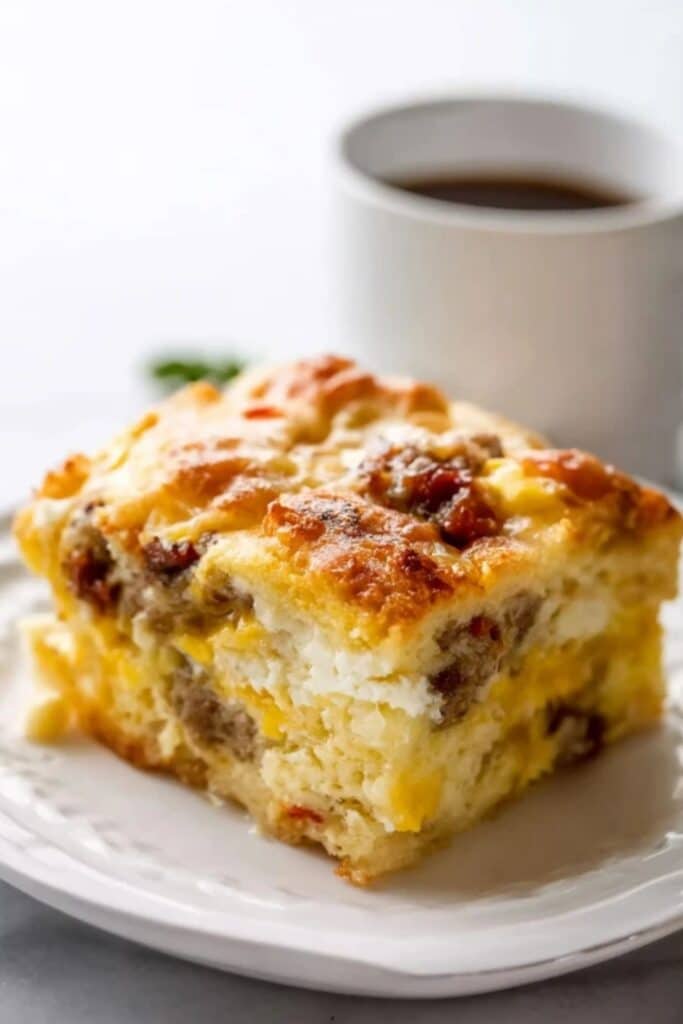 Yes, Biscuit Breakfast Casserole freezes beautifully. Let it cool completely, then wrap it tightly in foil and place in a freezer-safe bag. When ready, thaw overnight in the fridge and reheat in a 325°F oven for 20–30 minutes.