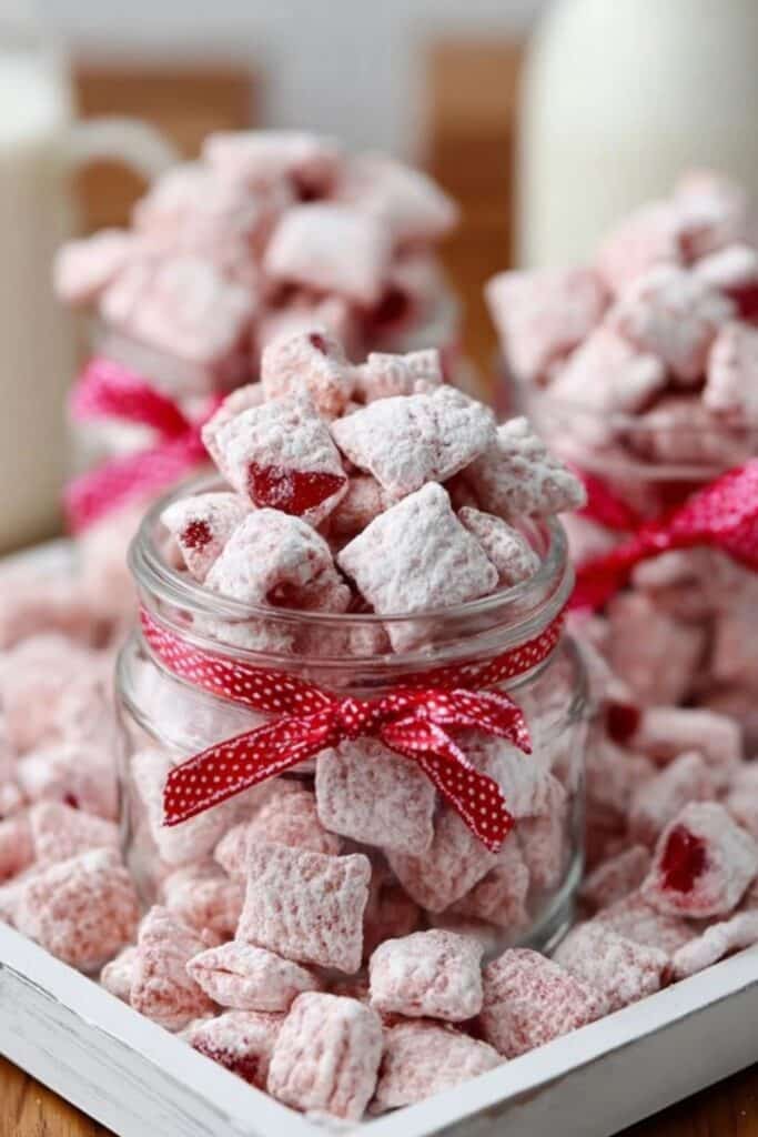 Want a foolproof edible gift? Cheery Cheesecake Puppy Chow wins every time. It fits easily into mason jars, treat bags, or decorative tins. Add a ribbon and a handwritten label, and boom—you’ve got a gift that’s both homemade and heartwarming.