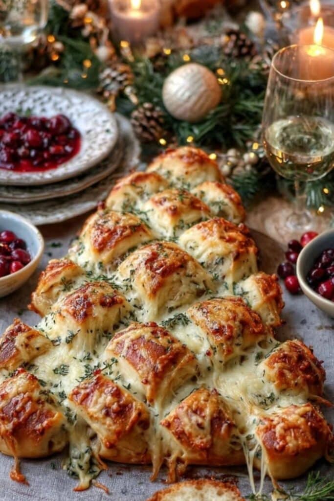 At its core, Cheesy Christmas Tree Bread brings people together. It’s designed to be shared, pulled apart at the center of a table, accompanied by laughter and hot cocoa. It’s often served with a side of marinara, pesto, or garlic butter, adding even more flavor layers.