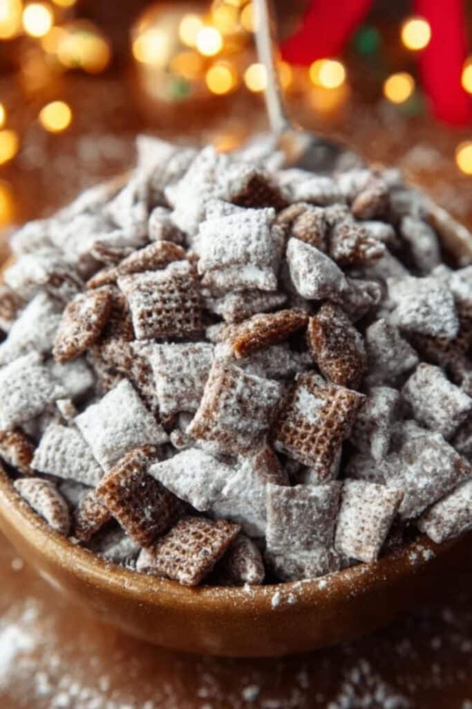 The beauty of Chex Mix Puppy Chow lies in its simplicity. The combination of chocolate, peanut butter, and cereal is comforting and familiar. And that powdered sugar coating? Pure magic. It gives each bite that snowy, melt-in-your-mouth sweetness that makes you keep coming back for more.