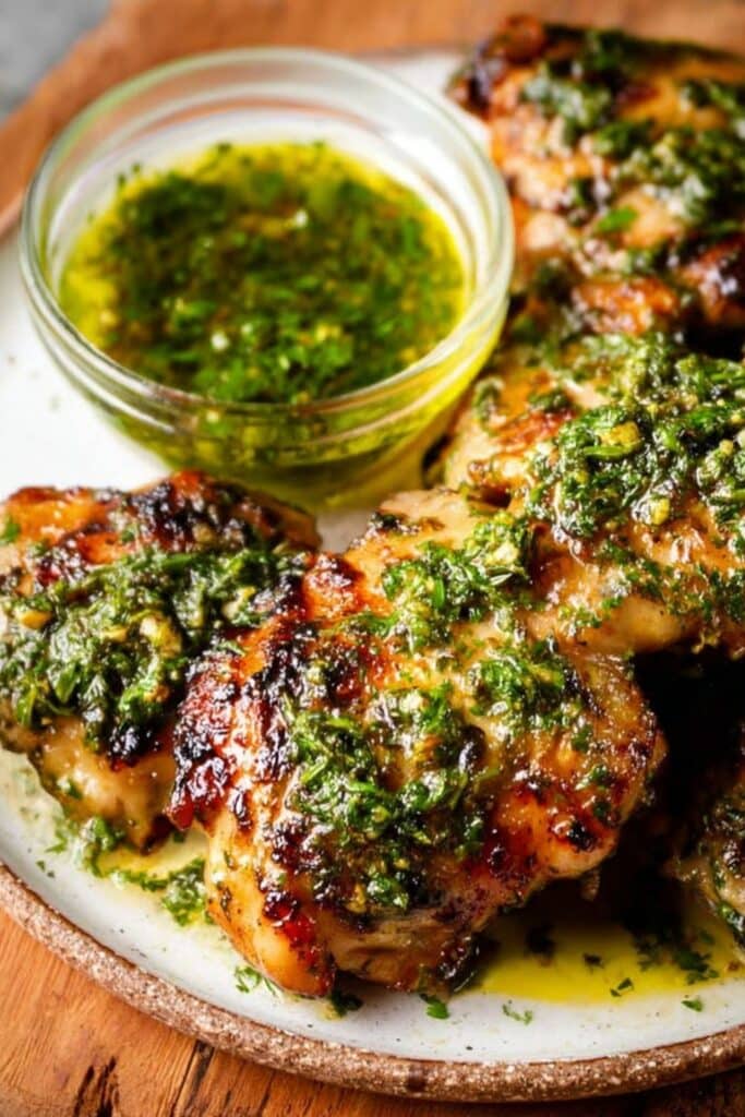 Chimichurri Chicken Thighs are so bold and herbaceous that they beg to be paired with vibrant, complementary sides. One of my all-time favorite combos is serving them over buttery mashed potatoes or lemony couscous. The richness of the chicken and zippy chimichurri sauce soaks into the starches beautifully.