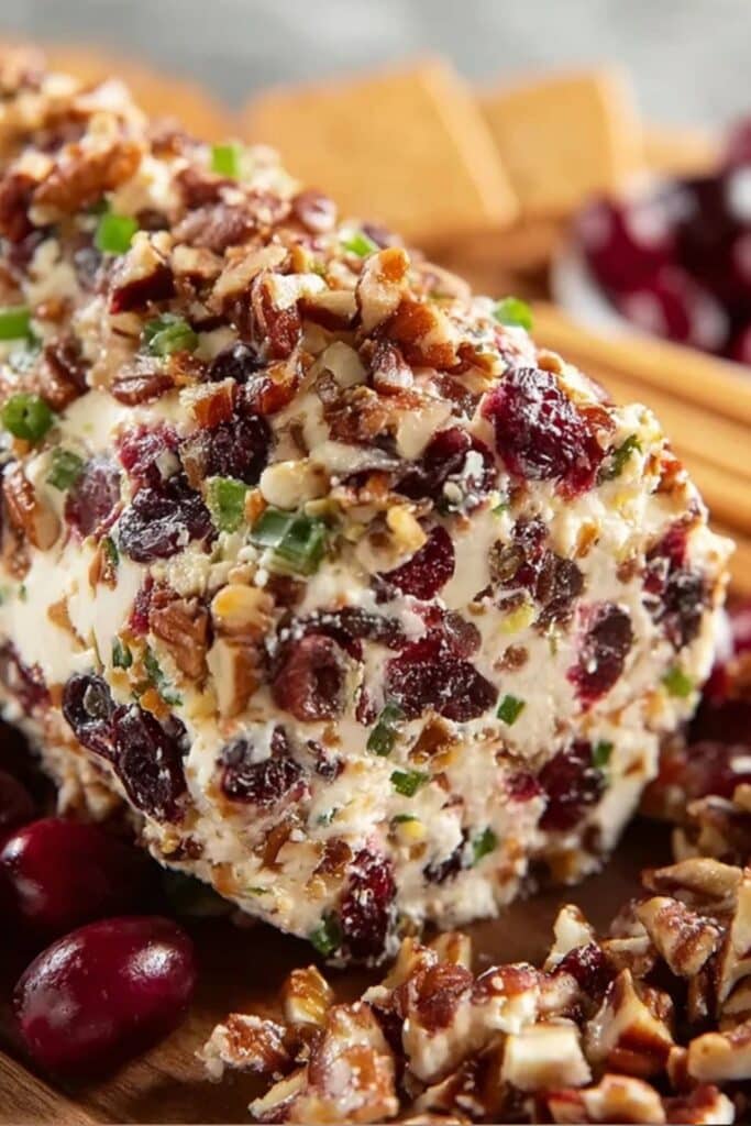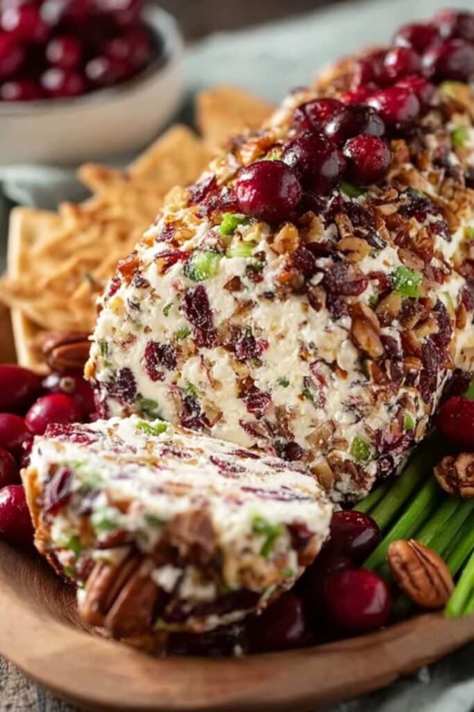 Before serving, roll it in a bowl of pecans and cranberries to coat. Press gently to help them stick. You can also roll it in a blend of nuts and herbs. Presentation matters—especially during the holidays.