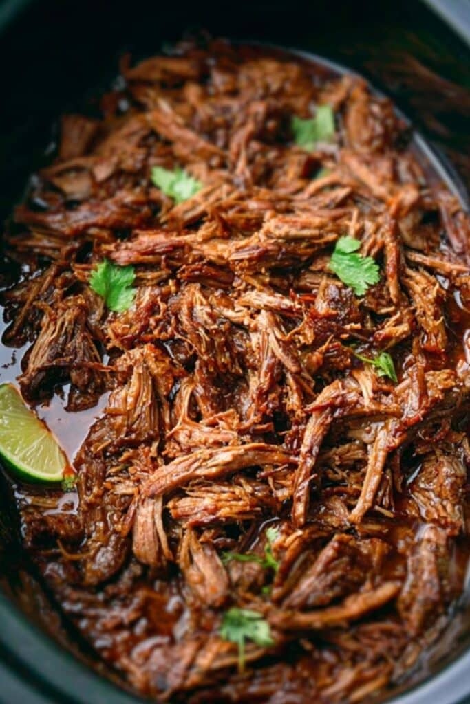 Once cooked, remove the beef and shred it using two forks. It should come apart effortlessly. Skim off any excess fat and return the shredded beef to the juices in the slow cooker for another 20–30 minutes. This extra step infuses every strand with flavor.