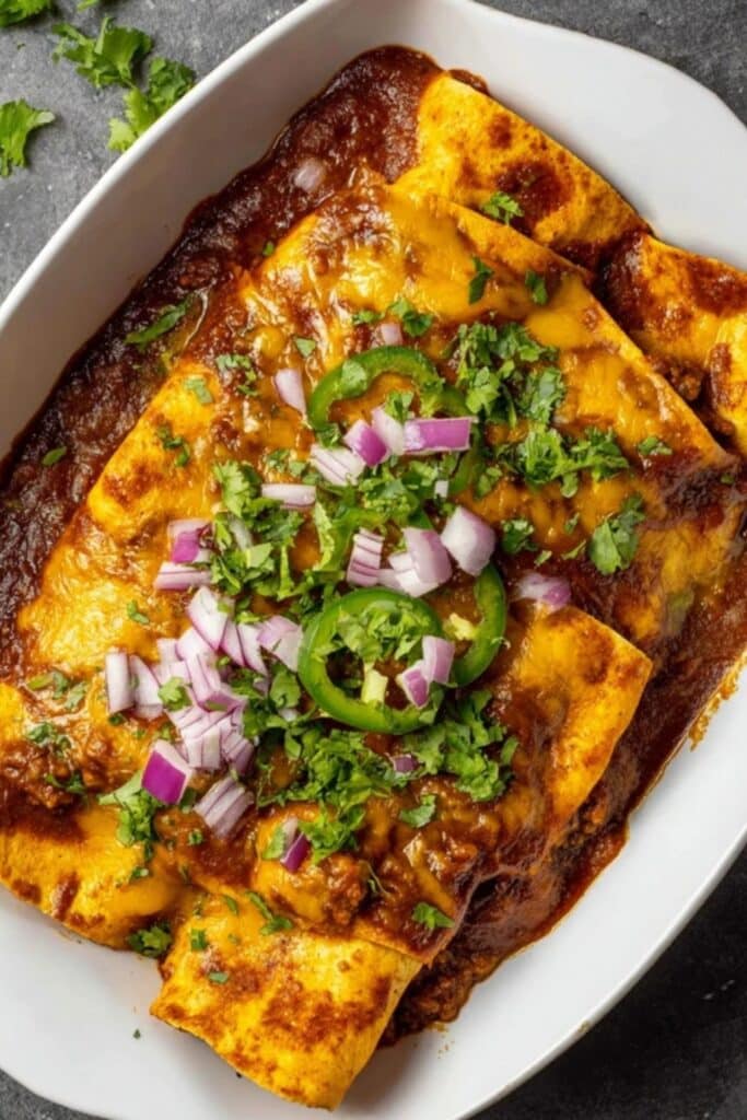 For extra depth, try mixing in a spoonful of chipotle in adobo sauce or a splash of coffee to the enchilada sauce. It sounds unusual, but the richness enhances the beef flavor beautifully.
