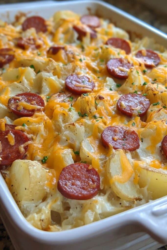 What makes it stand out is the balance: the smoky sausage perfectly contrasts the creamy potatoes and sharp cheddar. It’s the kind of dish you can prep ahead and bake later, making it ideal for busy weeknights or lazy Sundays.