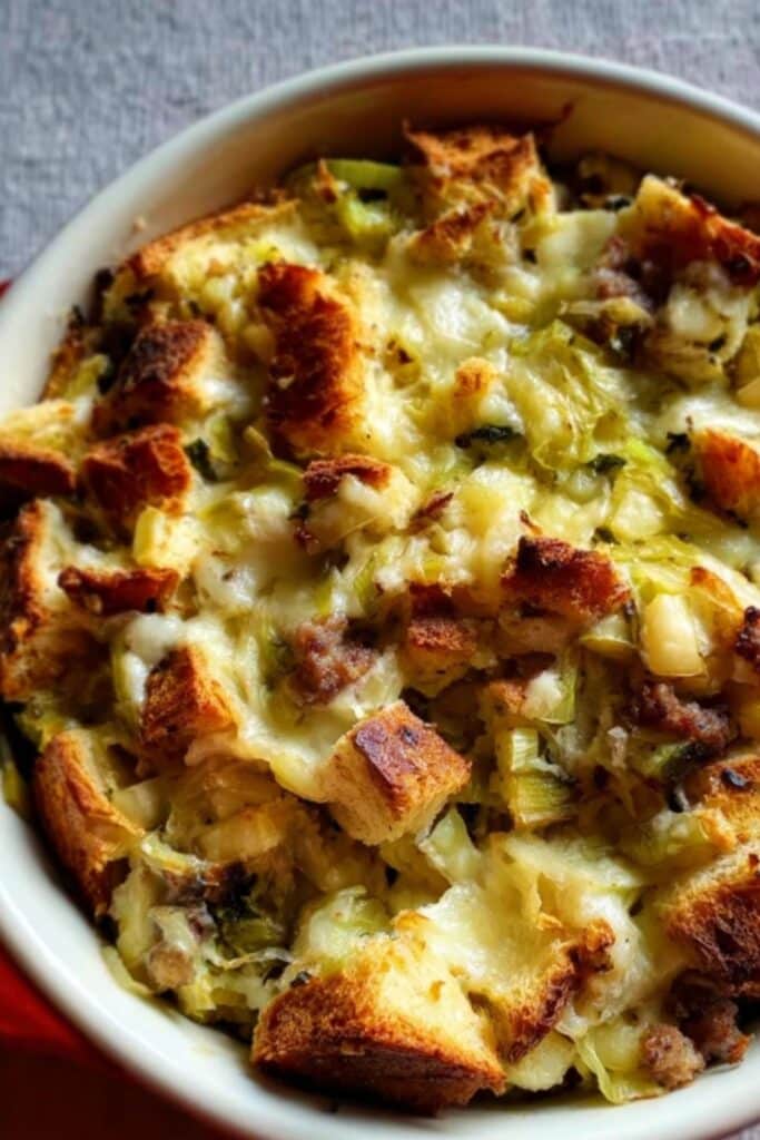 Pear, Leek, and Cheddar and Sausage Savory Bread Pudding is the kind of recipe that surprises and delights with every bite. It brings together rich, balanced flavors in a way that’s perfect for weekend brunch, family gatherings, or even cozy dinners. The sweet-savory combo of pear and sausage, mellow leeks, and sharp cheddar makes it unforgettable.