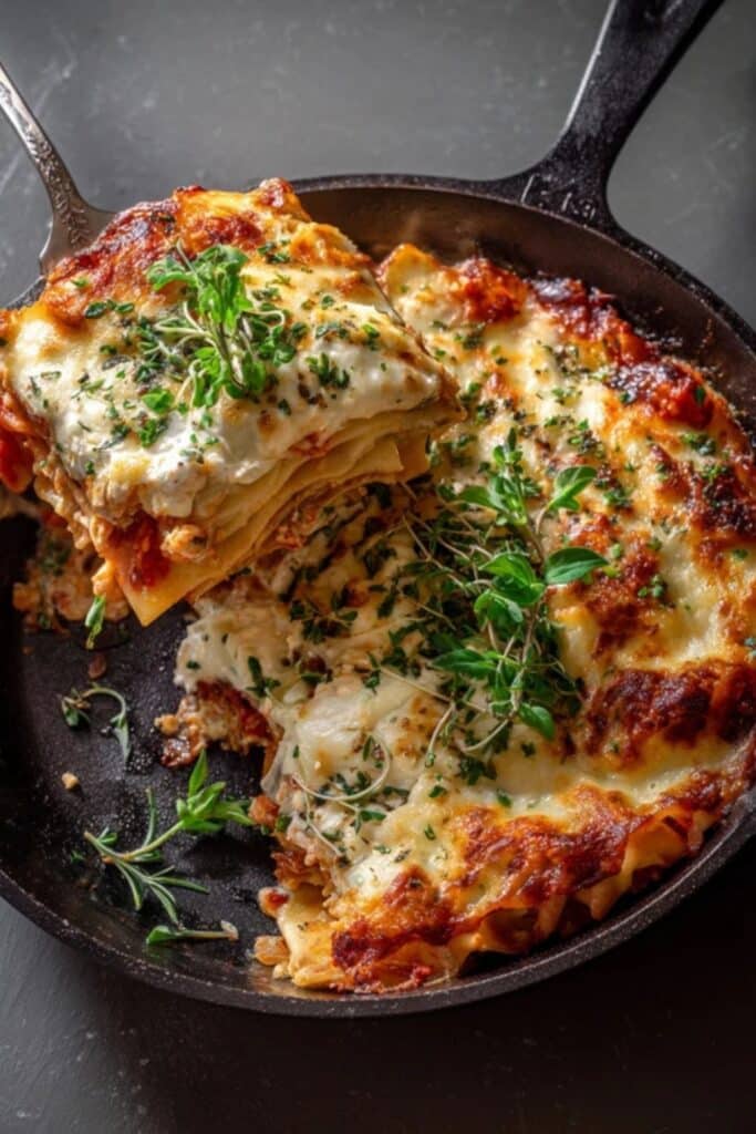- Broiled finish: Slide the uncovered skillet under the broiler for 3โ5 minutes, until the top turns spotty-golden and bubbly, just like the Southern-style skillet lasagnas that finish this way.