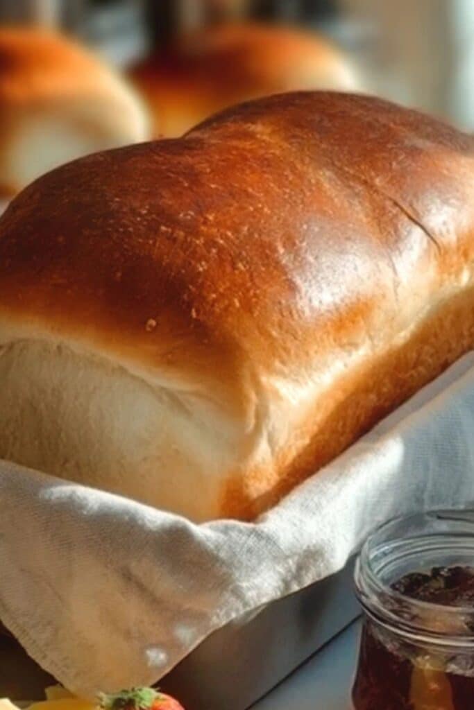After the dough rises, shape it into loaves and let them rest again in greased pans. A second rise is key to that soft, airy structure. Then it’s into the oven until the tops turn a beautiful golden brown.