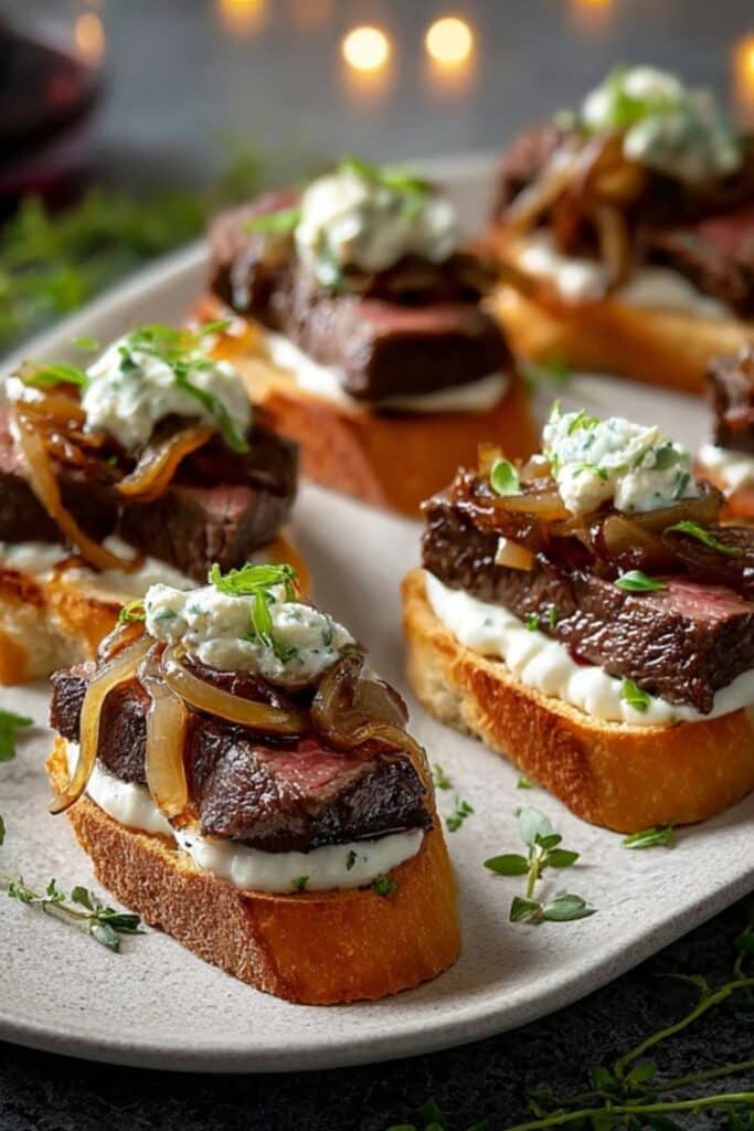 There’s a reason why Steak Crostini with Horseradish Sauce and Caramelized Onions is a crowd-pleaser. It’s all about balance. The creamy tang of horseradish sauce cuts through the richness of the steak. The caramelized onions add sweetness that lingers. And the crostini itself? Crispy, golden perfection.
