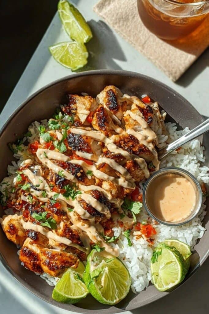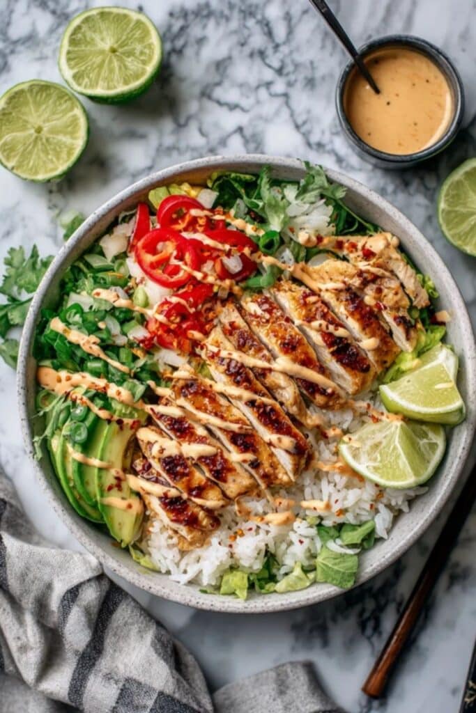 Sweet Chili Chicken Bowl with Coconut Lime Drizzle